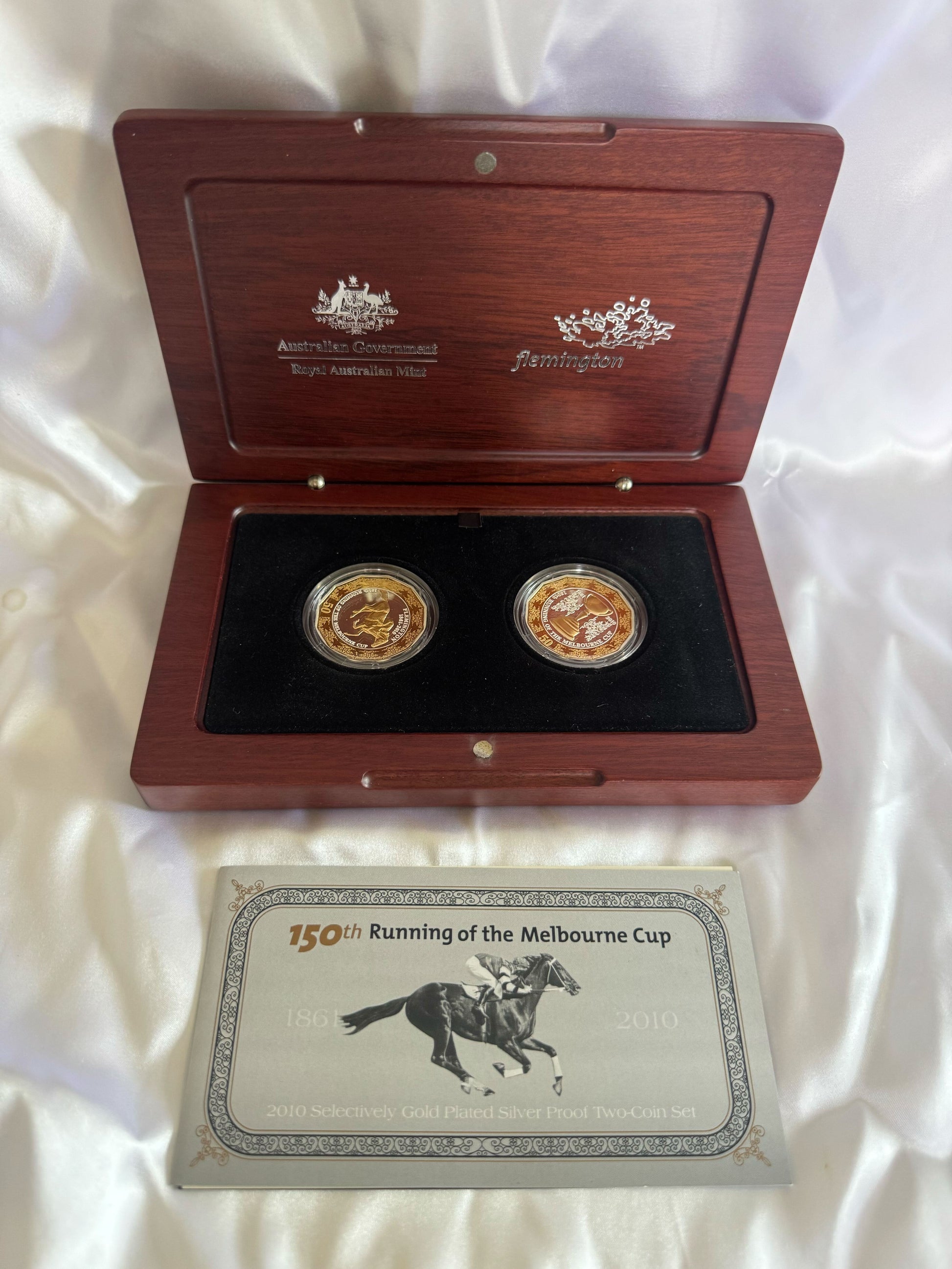 2010 Melbourne Cup 50c Gold Plated Silver Proof Coin Pair – Limited Mintage 5000